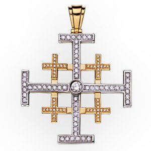 14K Gold Kreuzanhänger mit Diamanten - Jerusalem Kreuzanhänger - Gelbgold und Weißgold